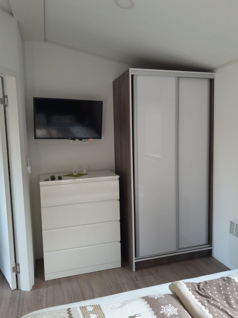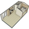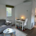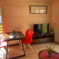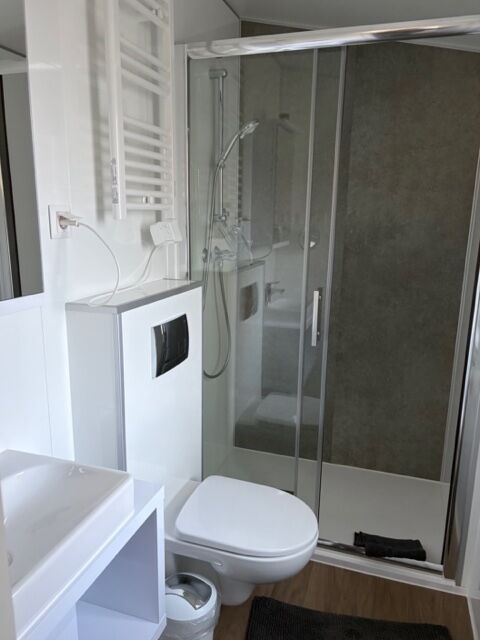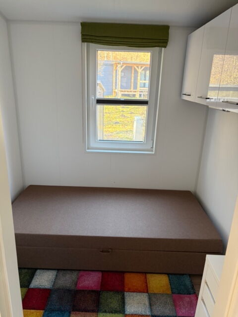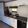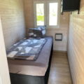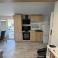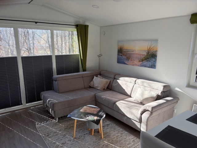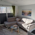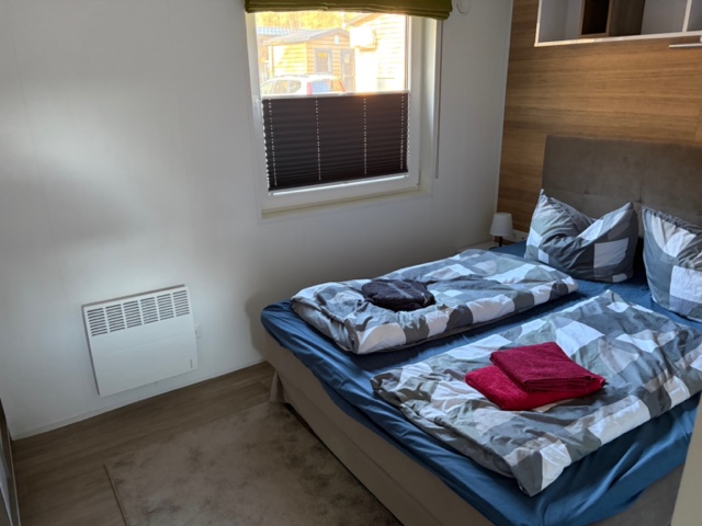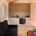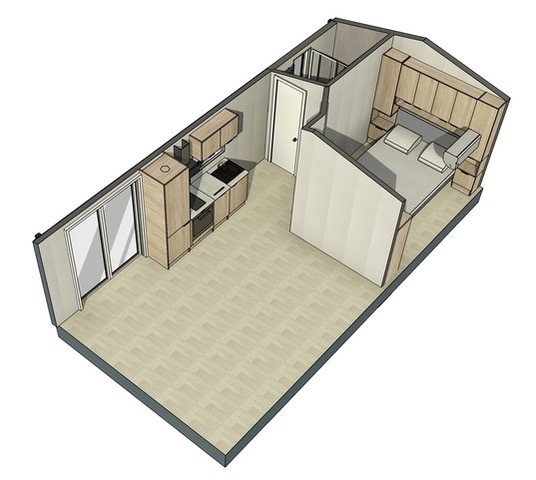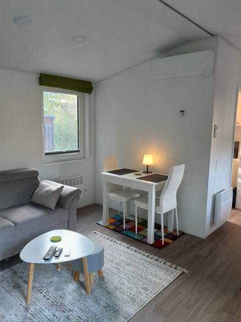 Das Mobilheim Studio ist ein modernes 1 Zimmer Apartment komplett mit Doppelbett, (Schlaf-)Sofa und kleiner Küche ausgestattet sowie einem Duschbad/WC plus kleiner Terrasse (3 Stufen). Ideal für 2 oder eine kleine Familie (2 EW/1 Kleinkind).