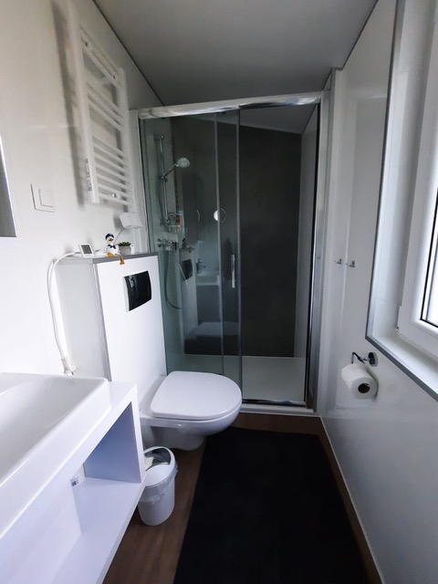 Das Tiny House wird über eine Klimaanlage gekühlt oder geheizt, je nach Jahreszeit.